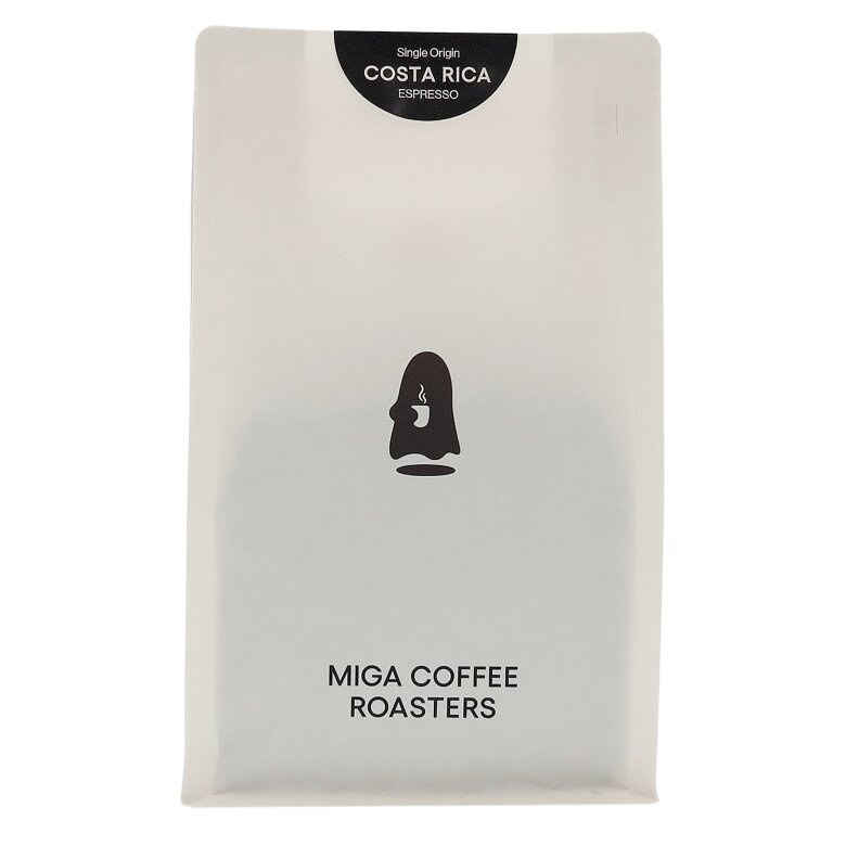 Miga Costa Rica Espresso to jednorodna arabika z Kostaryki, która została wypalona w stopniu średnim z przeznaczeniem do ciśnieniowych metod parzenia. Ziarna tej kawy to odmiana Catuai i Caturra, które rosną na wysokości 1300 m n.p.m. w regionie Alajuela, na farmie Hacienda Sonora. Kawa została poddana obróbce metodą Honey i uzyskała 86,5 punktów w skali jakości SCA, przez co zalicza się do kawy jakości Specialty. Opakowanie jest kompostowalne.