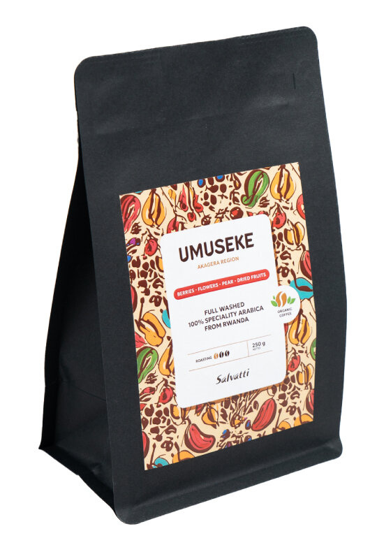 Salvatti Umuseke to jasno palona arabika jakości specialty z Rwandy przeznaczona do przelewowych metod parzenia. Kawa pochodzi z malowniczych terenów Parku Narodowego Akagera, gdzie żyzne gleby i unikalny mikroklimat tworzą doskonałe warunki do uprawy kawy. Ta wyjątkowa lokalizacja na wysokości 1850 m n.p.m. wpływa na niepowtarzalny charakter i bogactwo smaku tej kawy.