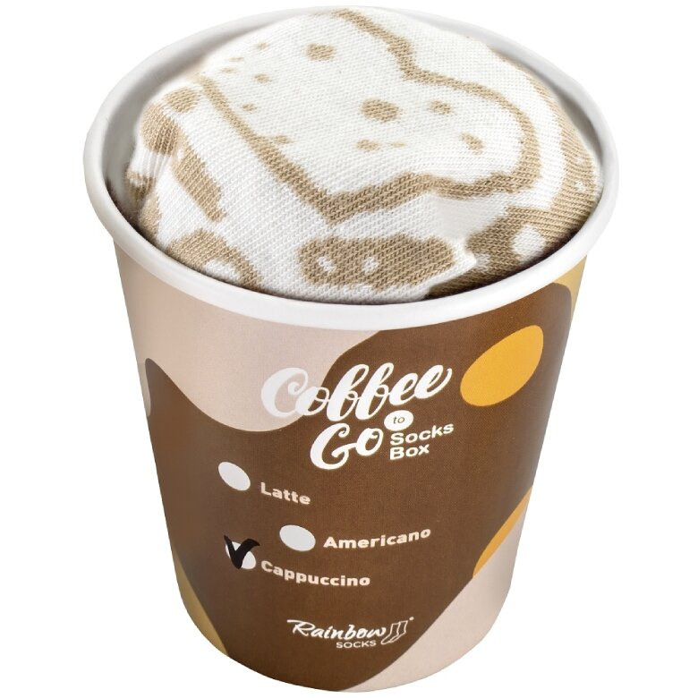 Skarpetki Kawa cappuccino w kubeczku na wynos od Rainbow Socks to idealny pomysł na prezent dla każdego miłośnika kawy. Skarpetki są zapakowane w kubeczek na wynos, a ich wzór przypomina klasyczne cappuccino z sercem na piance. To nie tylko śmieszny, ale i praktyczny prezent na każdą okazję, który z pewnością zachwyci fana kawy.