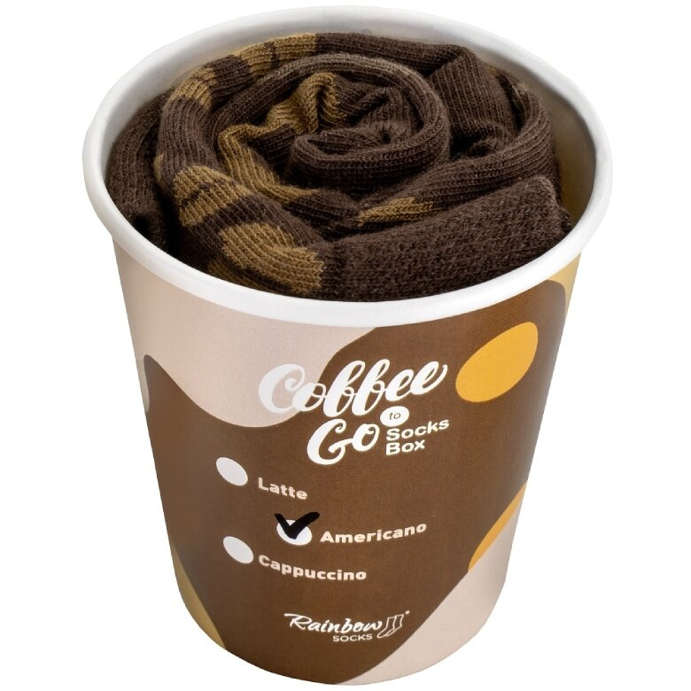 Skarpetki Kawa americano od Rainbow Socks to idealny prezent dla prawdziwych miłośników kawy. Skarptki zapakowane w kubeczek na wynos, są inspirowane kawą i utrzymane w odcieniach brązu, oddając charakter i elegancję kawy americano. To nie tylko zabawny, ale i praktyczny prezent na każdą okazję, który z pewnością zachwyci fana kawy .