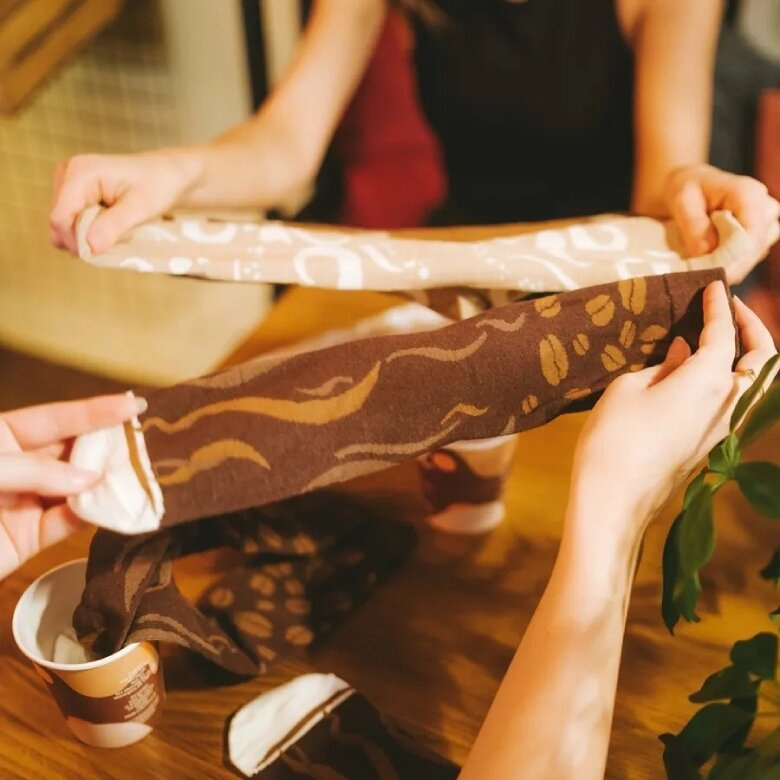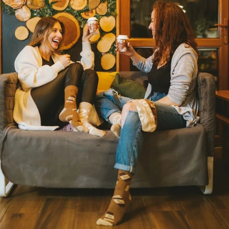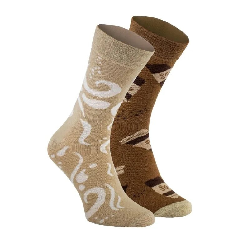 Skarpetki latte są inspirowane kawą, w odcieniach brązu i beżu i są zapakowane w kubek na wynos, która wygląda jak ulubiony napój. Każda skarpetka w parze ma inny wzór, przypominający latte art, co dodaje im unikalności. To nie tylko śmieszny, ale i praktyczny prezent na każdą okazję, który z pewnością zachwyci fana kawy.