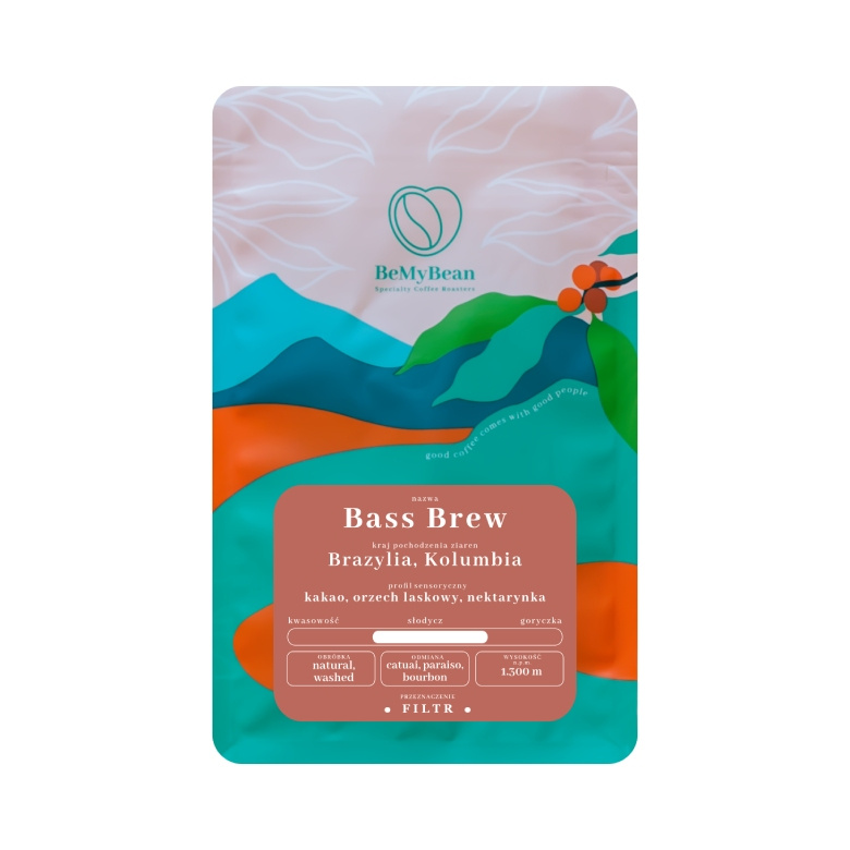 BeMyBean Bass Brew to jasno palona mieszanka arabiki z Brazylii (85%) i aktualnie wypalanej przez BeMyBeans kawy z Afryki lub Ameryki Południowej (15%). Jest to kawa, która zaspokoi podstawowe potrzeby fanów przelewowych metod parzenia.