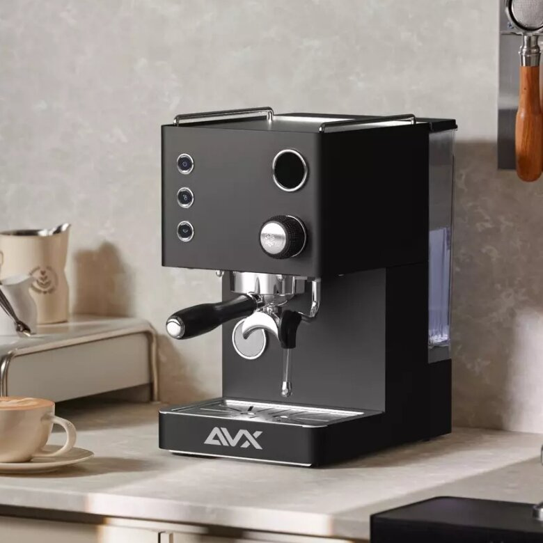 Ciśnieniowy ekspres AVX HERO Plus w czarnej obudowie prezentuje się bardzo eleganco i z pewnością będzie stanowił ozdobę każdego wnętrza. Ekspres jest wyposażony w profesjonalną dyszę pary umożliwiającą przygotowanie aksamitnego mleka do cappuccino czy latte, z którym bez problemu przygotujesz piękny latte art na swojej kawie.