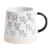 Kubek Homla jest ozdobiony rysunkami uroczych lisków. Na dole kubek posiada ozdobny pas w kolorze beżowym. Kubek ma czarne, szerokie i wygodne ucho, gwarantujące komfort trzymania. Kolory kubka są stonowane, dzięki czemu wpasuje się do każdego wnętrza.