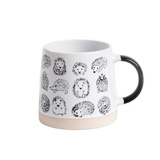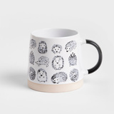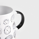 Kubek Homla jest ozdobiony rysunkami słodkich jeży w różnych pozach. Na dole kubek posiada ozdobny pas w kolorze beżowym. Kubek ma czarne, szerokie i wygodne ucho, gwarantujące komfort trzymania. Kolory kubka są stonowane i klasyczne, dzięki czemu wpasuje się do każdego wnętrza.