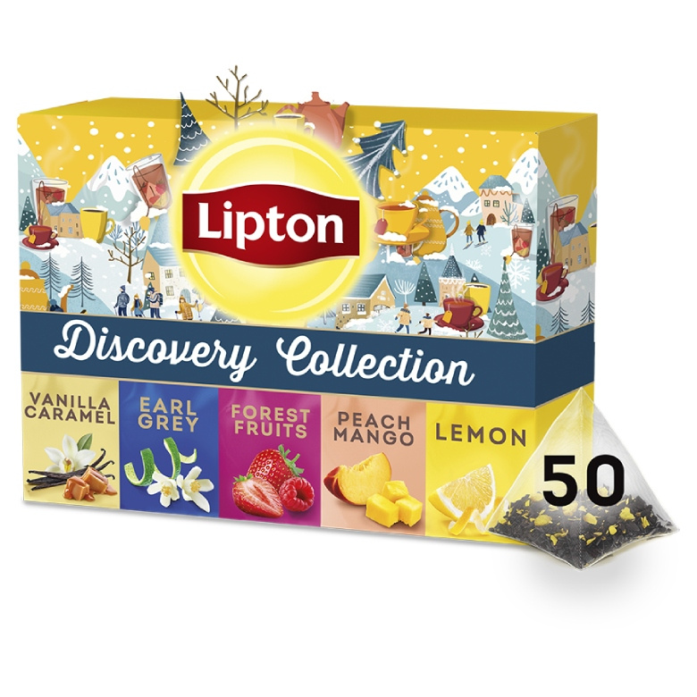 ZESTAW LIPTON DISCOVERY COLLECTION - HERBATA CZARNA 50 PIRAMIDEK W 5 SMAKACH