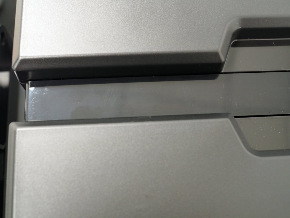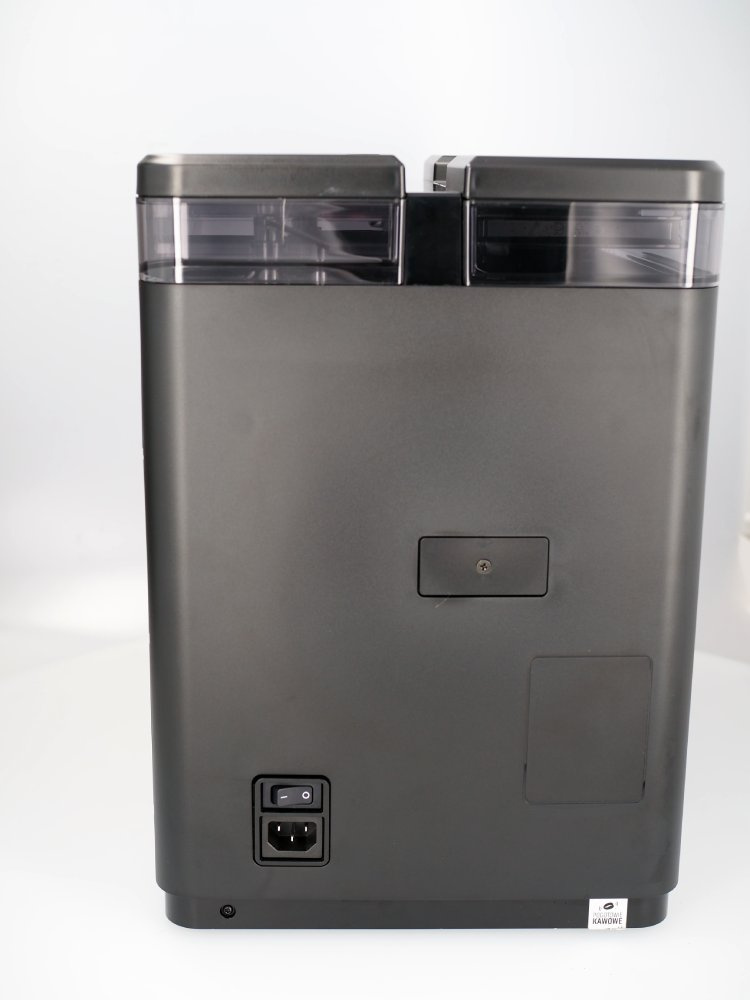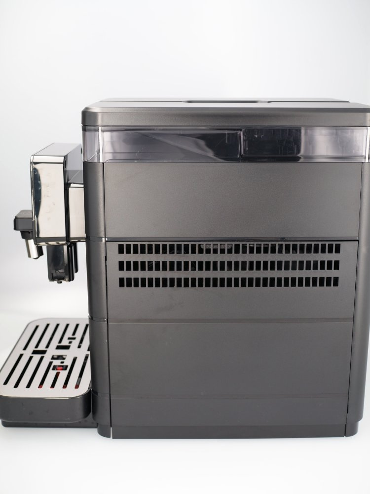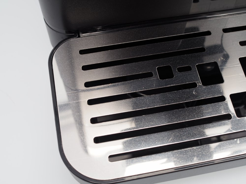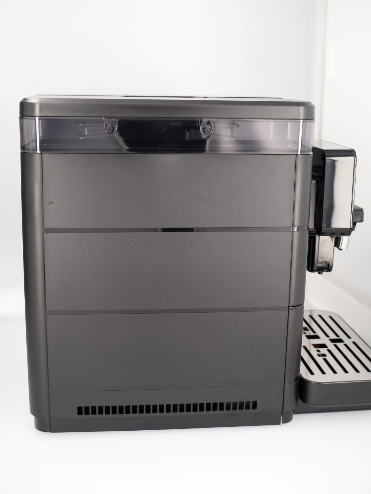 Młynek posiada delikatne rysy widoczne na zdjęciach na następujących elementach: taca ociekowa, przednia obudowa pod wylewką kawy, nad tacą ociekową, przestrzeń pomiędzy pokrywą zbiornika na wodę a pokrywą Hoppera. Rysa na tylnej ściance zbiornika na ziarna kawy. Plamy na bocznej i tylnej obudowie. Naklejka serwisowa na tylnej obudowie.