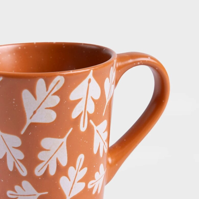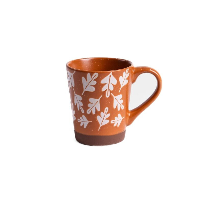 Kubek Homla ozdabiają urocze białe liście, które nawiązują do jesieni i wprowadzają przytulny klimat. Kubek posiada wygodne ucho, gwarantujące komfort trzymania.