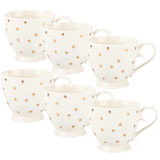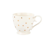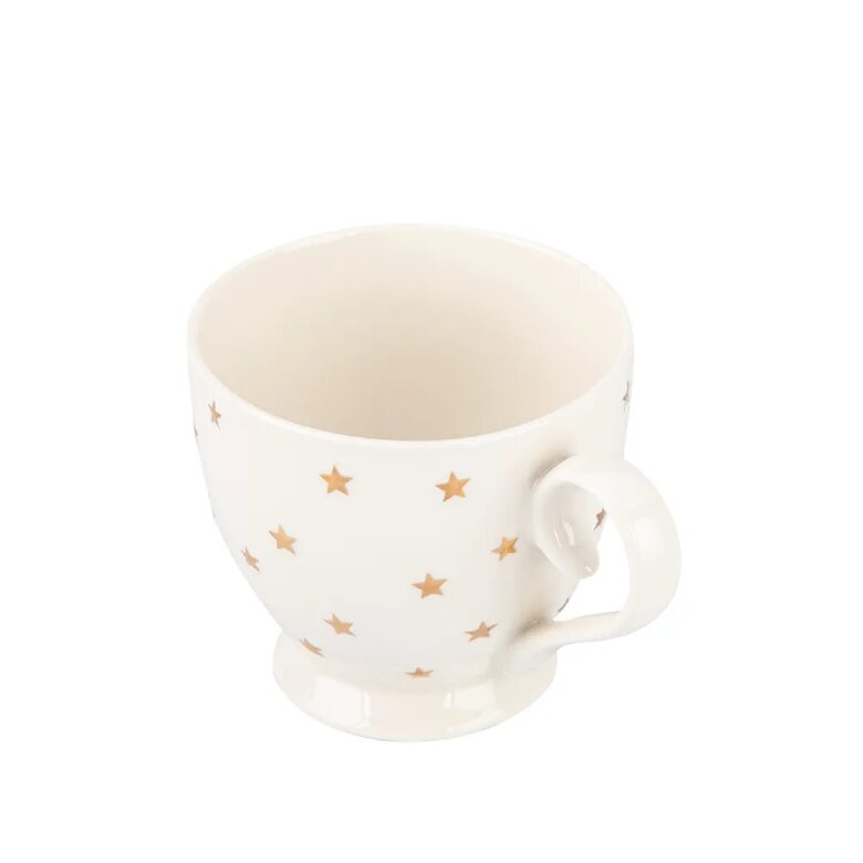 Filiżanki mają duże, wygodne ucho, które chroni przed oparzeniem oraz delikatne gwiazdki, które połyskują i nadają im wyjątkowego uroku.