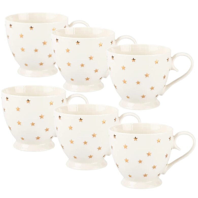 Porcelanowe filiżanki Altom Design Ice Queen to komplet 6 białych filiżanek w świątecznym stylu, które są przeznaczone do kawy i herbaty, i będą stanowić prawdziwą ozdobę stołu. Filiżanki są zdobione gwiazdkami w złotym kolorze, które nadają im świątecznego charakteru.