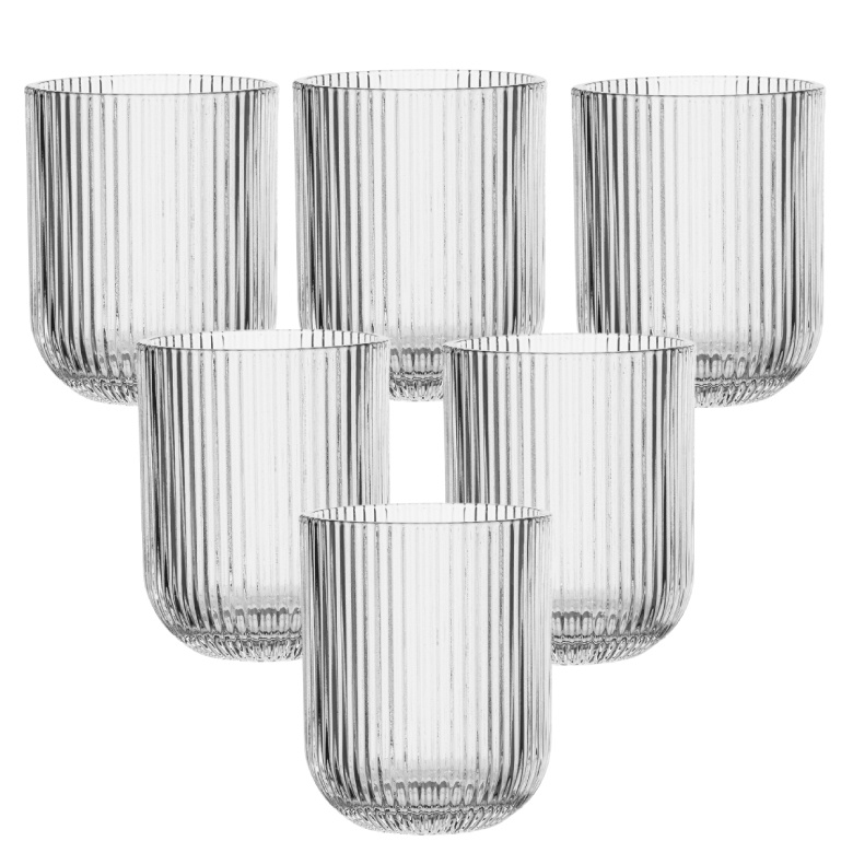 Komplet sześciu przezroczystych szklanek Altom Selena o pojemności 270 ml. Szklanki są wykonane z wysokiej jakości szkła, co gwarantuje ich trwałość i odpornośc na uszkodzenia. Ozdobione pionowymi plisami prezentują się niezwykle elegancko i stylowo, będąc ozdobą każdego stołu oraz przyjęć w domu czy na zewnątrz.