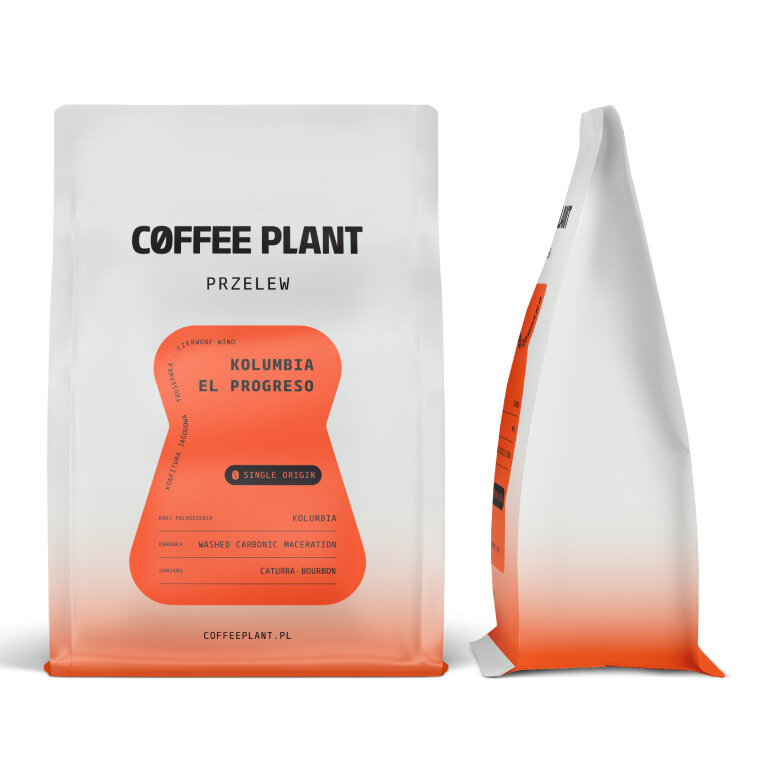 COFFEE PLANT Kolumbia El Progreso to wysokiej jakości kawa specialty z Kolumbii, typu Single Origin, starannie wypalona z myślą o metodach alternatywnych. Tworzą ją ziarna odmian Caturra i Bourbon, które przeszły proces maceracji węglowej po obróbce na mokro (washed carbonic maceration). Dzięki temu kawa zyskuje wyjątkowy i wyrazisty profil smakowy, z subtelnymi akcentami alkoholowymi, które czynią ją niezwykle oryginalną.