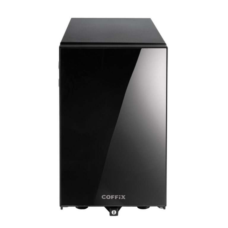 COFFIX PMC9-L to chłodziarka do mleka, która doskonale sprawdzi się w biurze, restauracji czy stacji paliw, jako uzupełnienie stoiska kawowego. Lodówka wyróżnia się wysoką wydajnością i niskim poborem prądu (potwierdzony certyfikatem EPREL najwyższej klasy A), dzięki czemu przechowywane w niej mleko może być stale schładzane do temperatury 4°C. Lodóka posiada drzwi z zamkiem, dzięki czemu możemy zamknąć je na klucz.