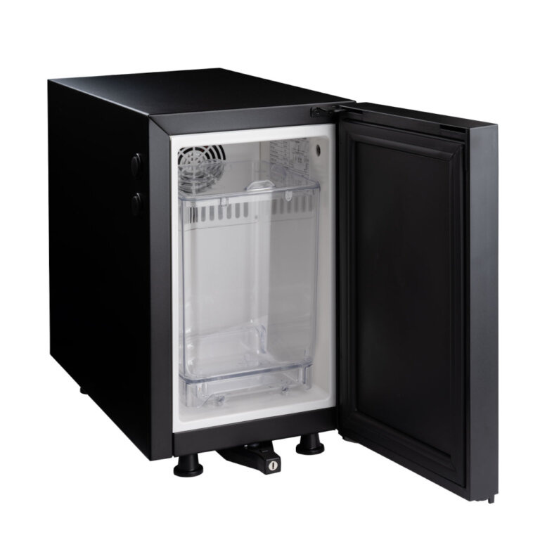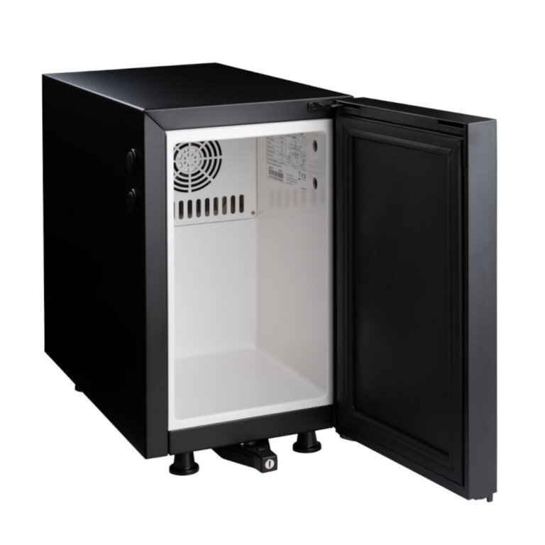Minimalistyczny i stylowy projekt chłodziarki podkreśla front z czarnego, połyskującego szkła. Chłodziarka została zaprojektowana tak, aby pasowała do każdego wnętrza i każdego ekspresu. Konstrukcja lodówki została oparta na agregacie chłodniczym z możliwością regulacji. Pokrętło regulacji znajduje się za tylna obudową chłodziarki. Demontaż tylnego panelu należy wykonywać jedynie po zapoznaniu się z instrukcją.