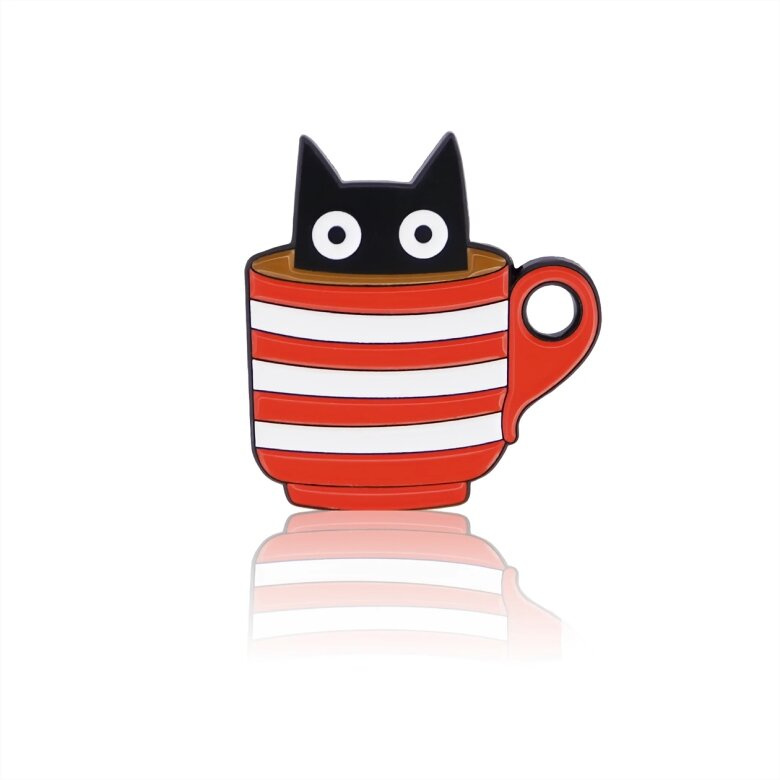Kotek w kubku z kawą to zabawna i urocza przypinka z motywem kotka w kubku kawy. Jest to zabawny dodatek dla wszystkich miłośników zwierząt. Ta przypinka wykonana jest z dbałością o detale – żywe kolory i precyzyjny nadruk sprawiają, że będzie trwałym elementem ozdobnym, który ożywi każdą stylizację.