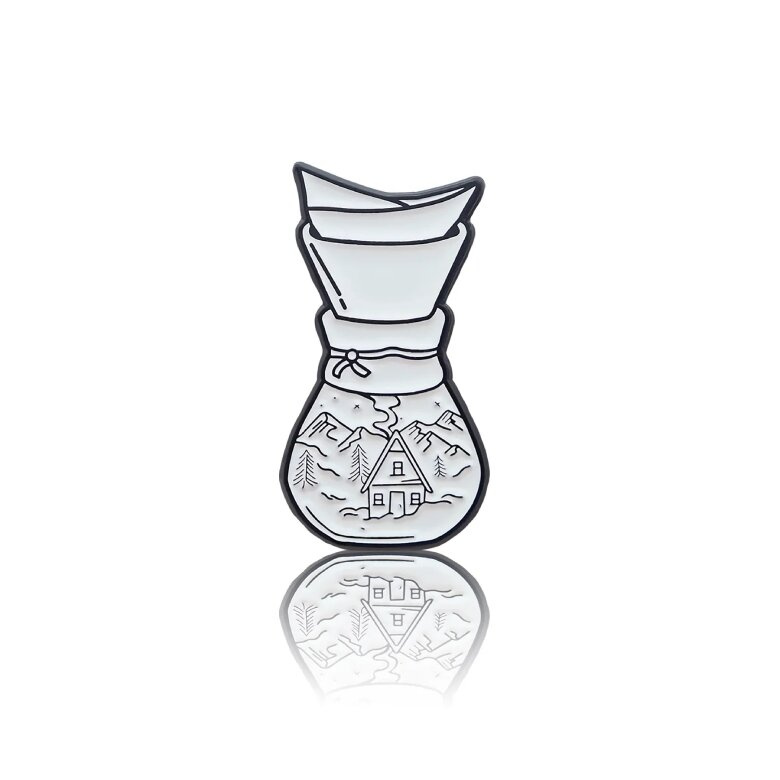 Domek w górach to urocza przypinka w kształcie zaparzacza Chemex, a w nim umieszczony górski krajobraz - domek i góry w tle. Ta przypinka wykonana jest z dbałością o detale - żywe kolory i precyzyjny nadruk sprawiają, że będzie trwałym elementem ozdobnym, który ożywi każdą stylizację.