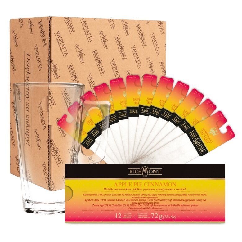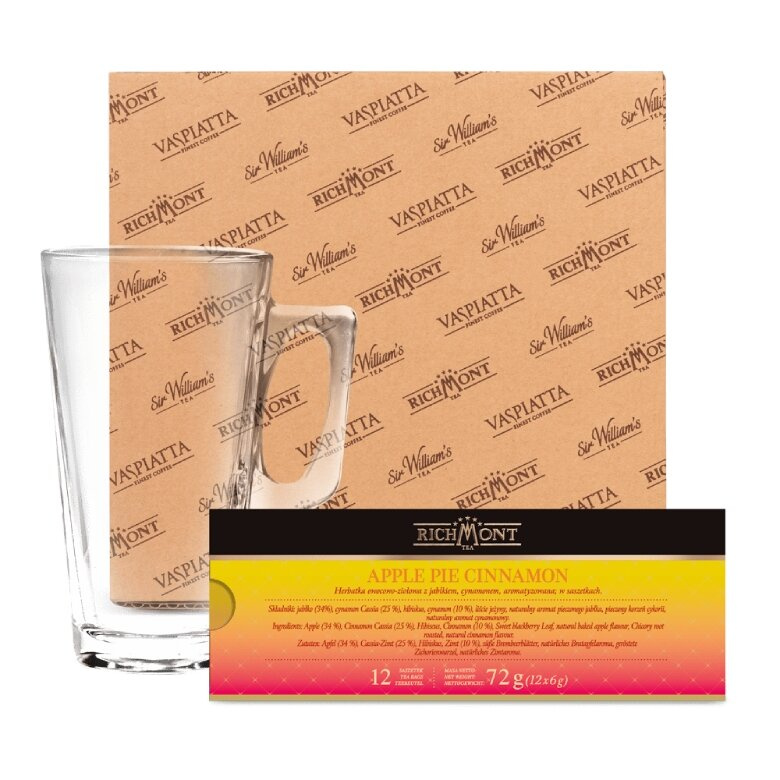 ZESTAW Richmont Apple Pie Cinnamon OWOCOWA HERBATA + SZKLANKA HOT