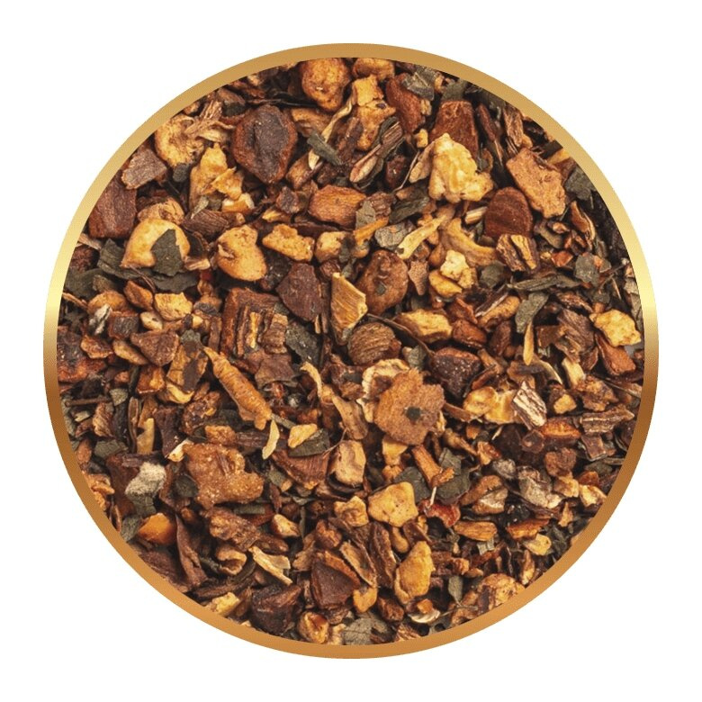 Skład: jabłko (34%), cynamon Cassia (25%), hibiskus, cynamon (10%), liście jeżyny, naturalny aromat pieczonego jabłka, pieczony korzeń cykorii, naturalny aromat cynamonowy.
