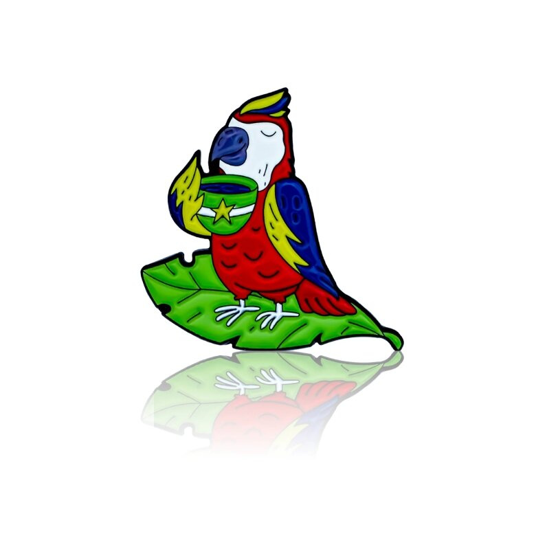 Papuga z kawą to urocza przypinka przedstawiająca kolorową papugę pijącą kawę. Ta przypinka wykonana jest z dbałością o detale - żywe kolory i precyzyjny nadruk sprawiają, że będzie trwałym elementem ozdobnym, który ożywi każdą stylizację.