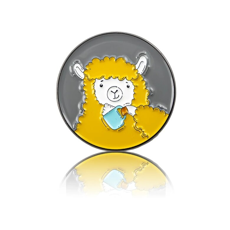 Owieczka z kubkiem to zabawna przypinka przedstawiająca żółtą owieczkę z kubkiem kawy. Przypinka wykonana jest z dbałością o detale - żywe kolory i precyzyjny nadruk sprawiają, że będzie trwałym elementem ozdobnym, który ożywi każdą stylizację.
