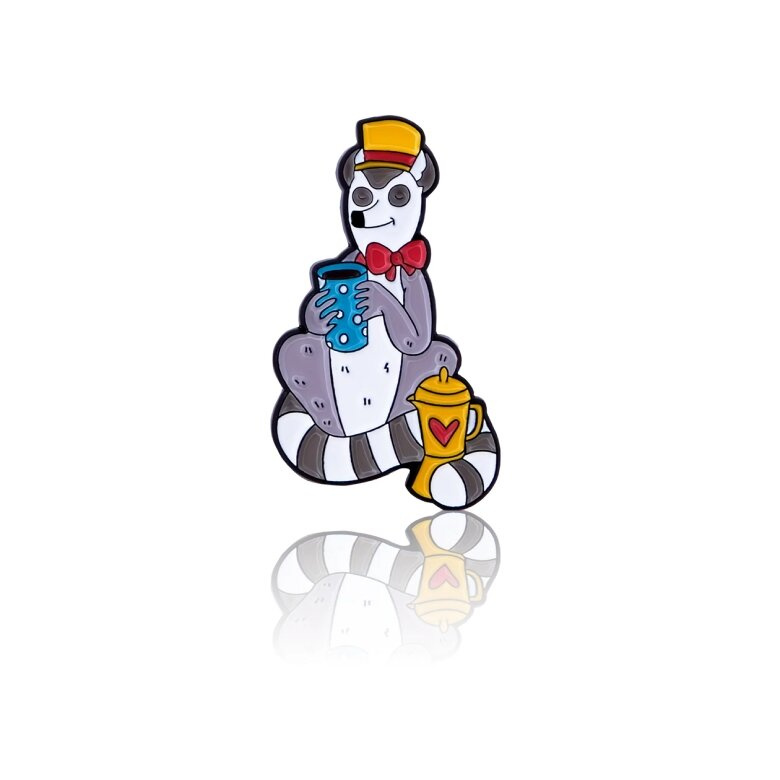 Lemur z kubkiem kawy to zabawna przypinka przedstawiająca lemura z kawiarką i kubkiem kawy. Przypinka wykonana jest z dbałością o detale - żywe kolory i precyzyjny nadruk sprawiają, że będzie trwałym elementem ozdobnym, który ożywi każdą stylizację.