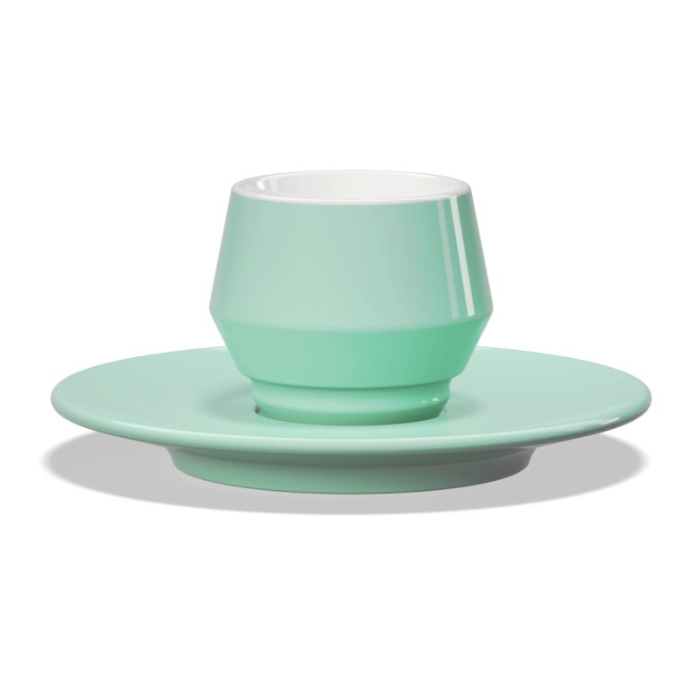 Filiżanka do kawy włoskiego producenta Club House o pojemności 120 ml w kolorze turkusowym. Filiżanki są używane w zawodach Mistrzostw Świata Latte Art WLAC (World Latte Art Championship).