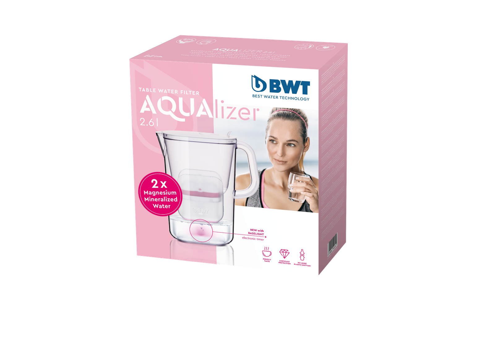 - Zestaw zawiera: Dzbanek BWT AQUAlizer Baselight 2,6 l, 2x filtr BWT Magnesium Mineralized Water
