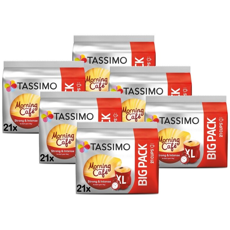 Zestaw składa się z 6 opakowań kapsułek Tassimo Morning Cafe Strong & Intense XL 21 szt.