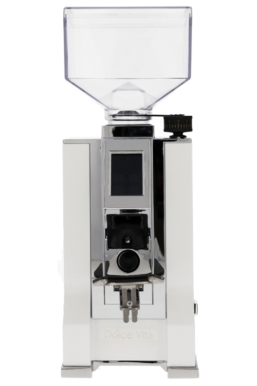 Eureka Mignon Dolce Vita w klasycznym białym kolorze cechuje się eleganckim i nowoczesnym designem, dzięki użyciu materiałów premium oraz wygodniejszym panelem sterującym. Dodatkowo Dolce Vita został wyposażony w technologię Silent Technology, redukującą hałas mielenia oraz system elektrostatyczny zapobiegający zbrylaniu się kawy oraz elektryzowaniu drobinek.