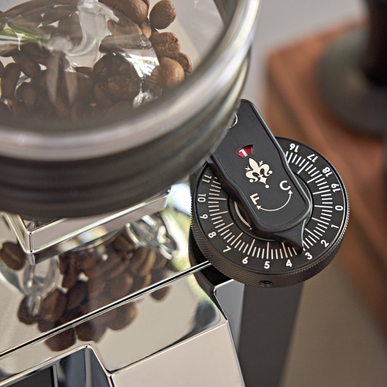 Młynek do kawy Eureka Mignon ZERO 65 został wyposażony w płaskie żarna z utwardzonej stali o średnicy 65 mm o większej powierzchni mielenia, co poprawia jakość i równomierność mielenia.
