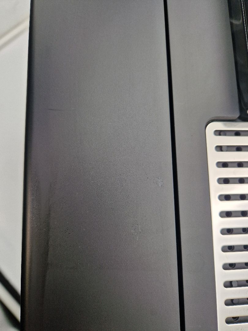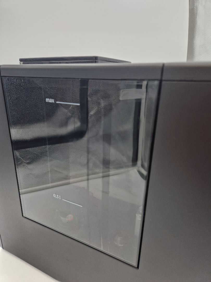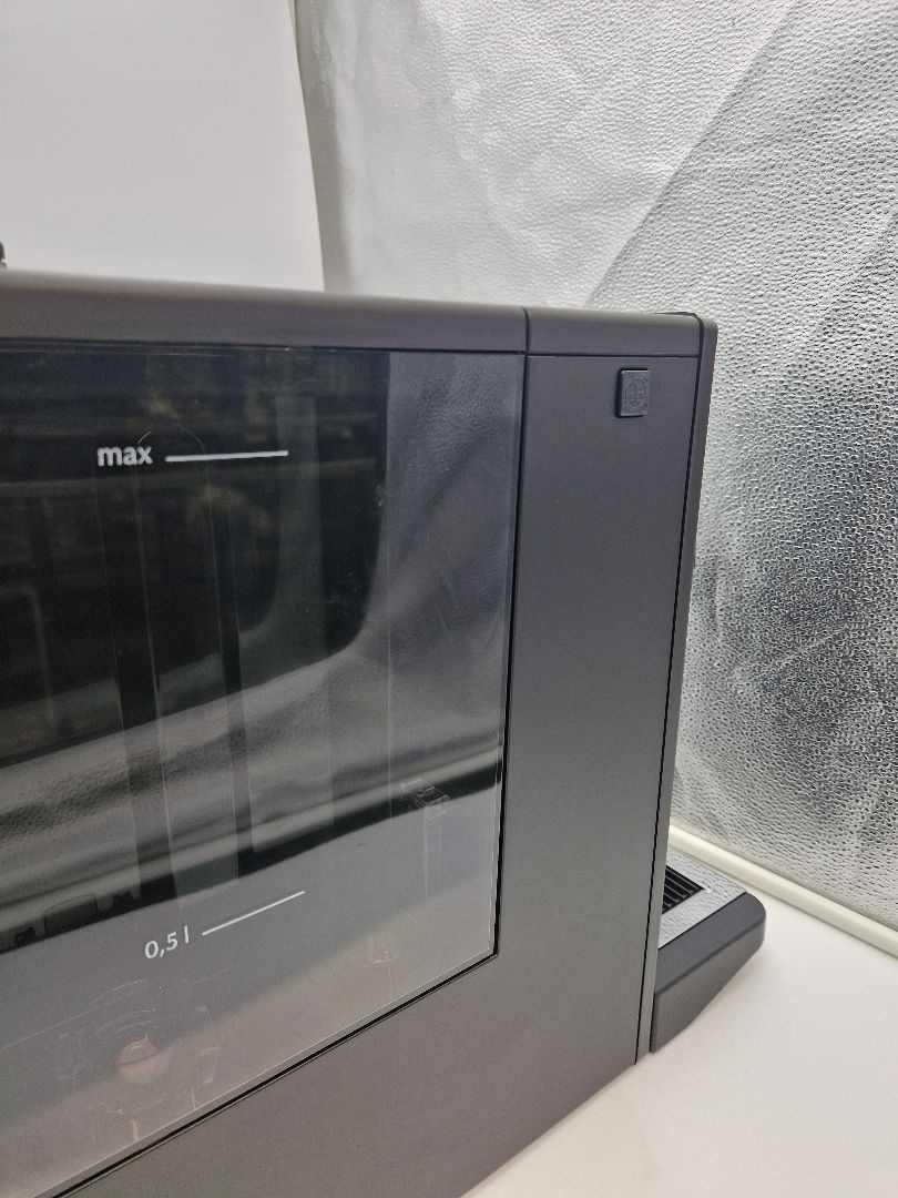 Ekspres posiada delikatne rysy widoczne na zdjęciach na następujących elementach: taca ociekowa, kratka tacy ociekowej, górna podstawka pod filiżanki, drzwiczki serwisowe. Zbiornik na wodę, pokrywa zbiornika oraz zbiornik na kawę i pokrywa zbiornika ze śladami kleju. Niewielkie odbarwienie na drzwiczkach serwisowych.
