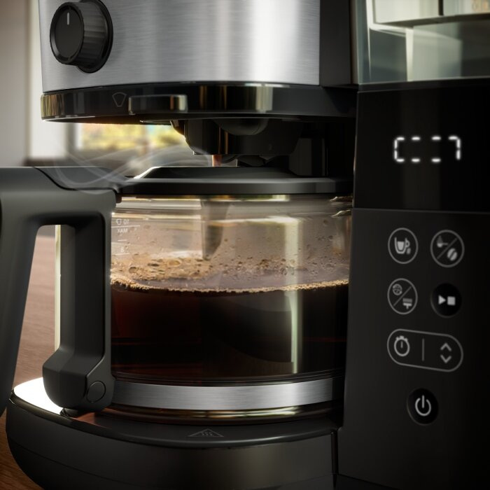 Ekspres posiada delikatne rysy widoczne na zdjęciach na następujących elementach: pokrywa dzbanka, płyta grzewcza