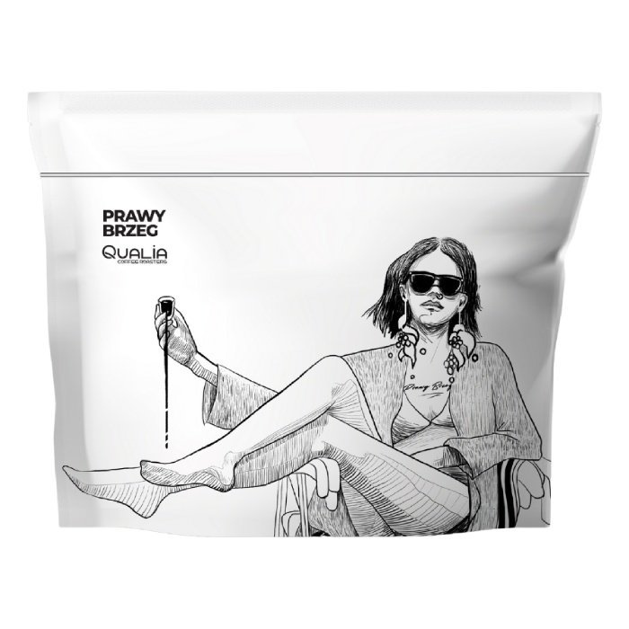 Qualia Prawy Brzeg 7.0 to średnio palona mieszanka arabiki z Brazylii (Serra da Mantiqueira) i Peru (Chanchamayo, Villa Rica, Pichanaki, Satipo) przeznaczona do ekspresów ciśnieniowych. Jej ziarna odmian Acaia i Typica zostały poddane obróbce metodą pulped natural oraz washed i sun-dried. Opakowania kaw z serii Szczecińskie Klimaty zostały zaprojektowane przez artystę, grafika i architekta - Łukasza Bogdanowicza z ONWALL.