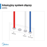 Midea CWRC600-A106 to nowoczesny, bezzbiornikowy system odwróconej osmozy, który gwarantuje najwyższą jakość filtracji wody bez konieczności jej magazynowania. Dzięki dwóm membranom osmotycznym 300GPD oraz hybrydowemu wkładowi PCB, usuwa do 99,9% zanieczyszczeń, w tym metale ciężkie, pestycydy, bakterie i wirusy, zapewniając bezpieczną, czystą i smaczną wodę prosto z kranu. Zapewnia doskonałą jakość filtrowanej wody zarówno w gospodarstwach domowych, jak i w biurach, małych punktach gastronomicznych oraz innych przestrzeniach komercyjnych. Urządzenie może przefiltrować do 96 litrów wody na godzinę.