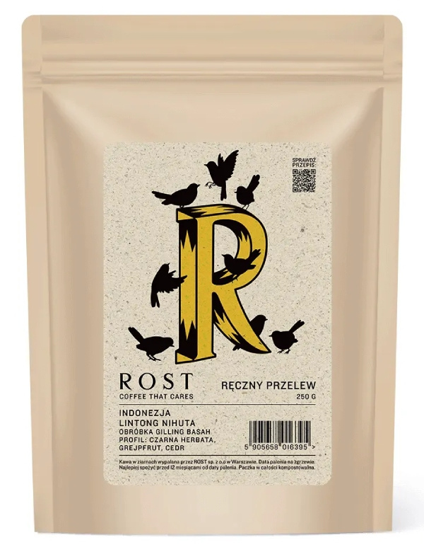 ROST Indonezja Lintong Nihuta to kawa przyjemnej słodyczy i średniej kwasowości. W jej smaku możemy wyczuć nuty czarnej herbaty, grejpfruta i cedru.
