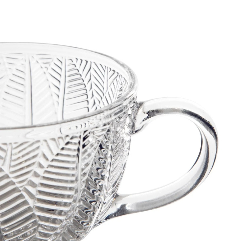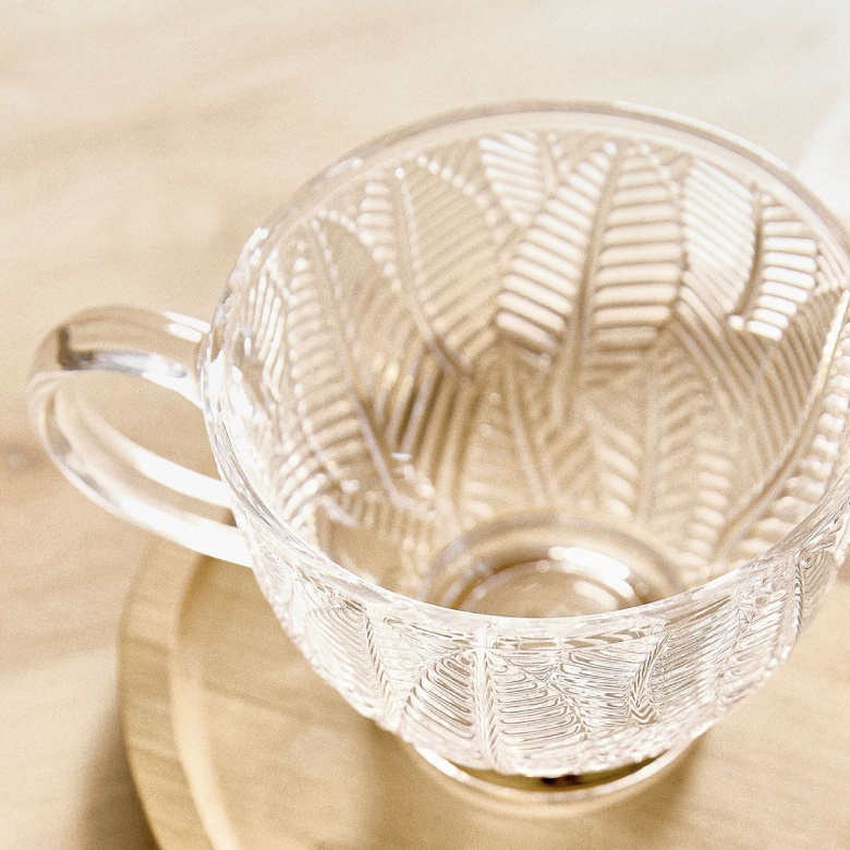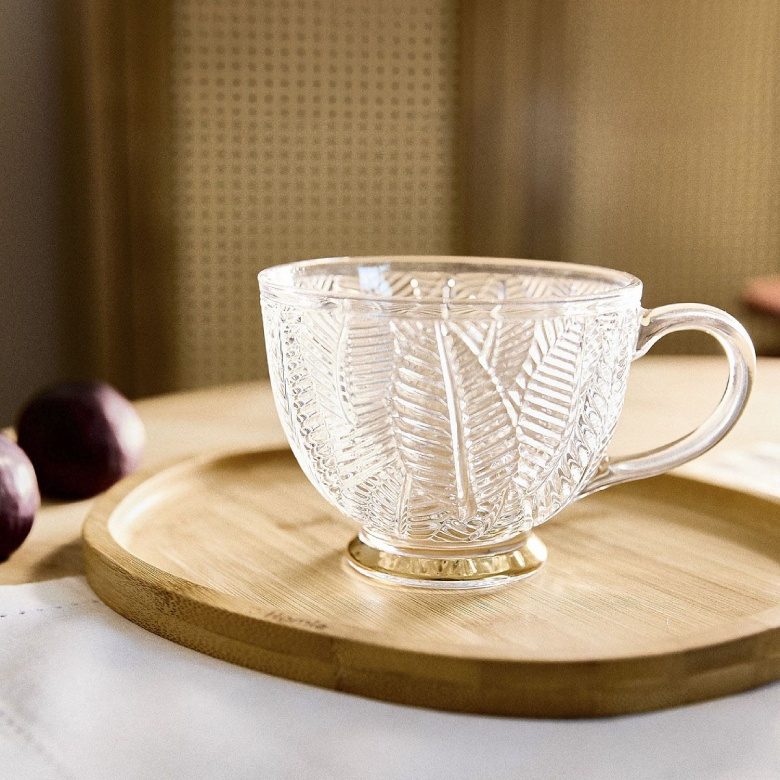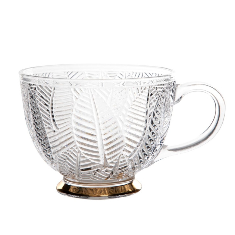 Filiżanka BARREL o pojemności 360 ml to połączenie elegancji i funkcjonalności, idealne dla miłośników kawy i herbaty. Jej unikalny wzór w liście oraz złota nóżka dodają wyrafinowanego charakteru każdemu spotkaniu przy stole. Wykonana z wysokiej jakości szkła, przyciąga wzrok i stanowi doskonałe uzupełnienie nowoczesnej zastawy stołowej.