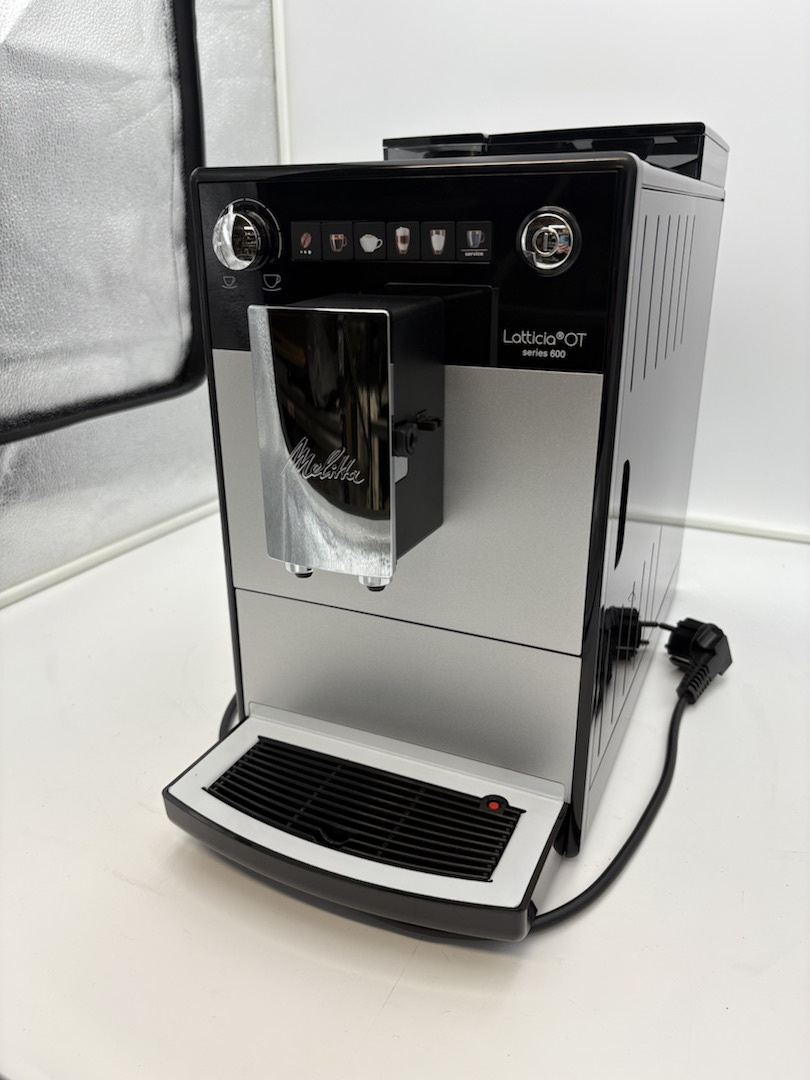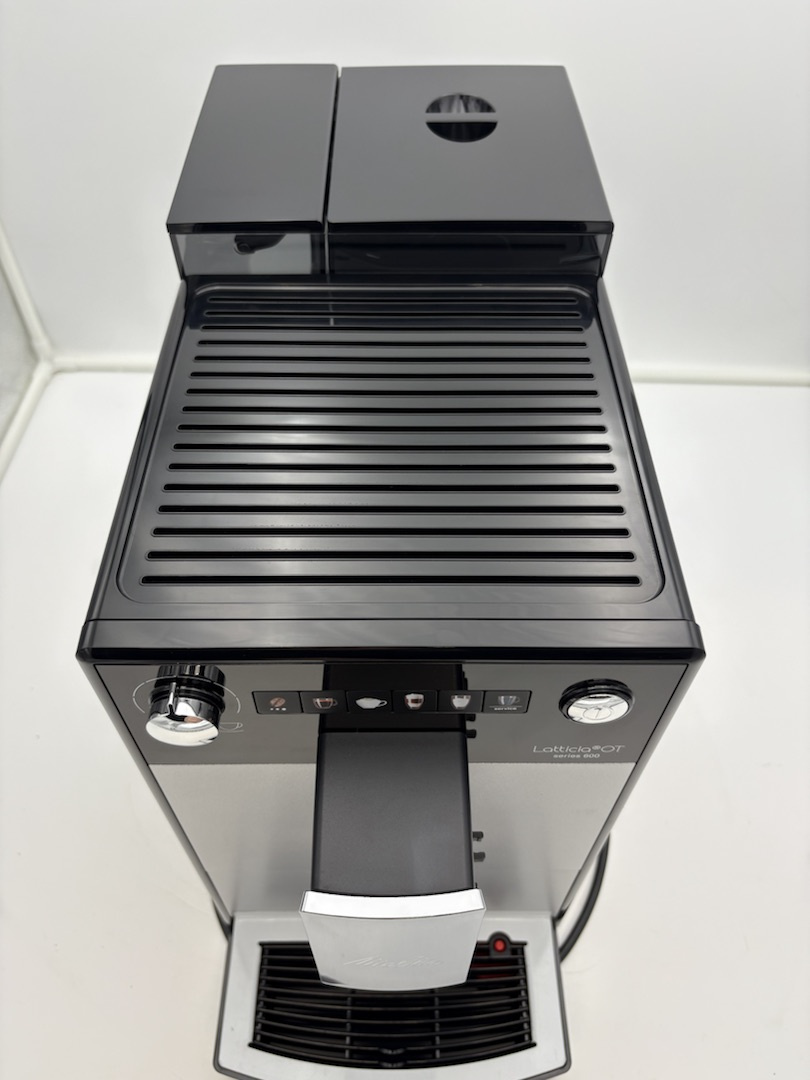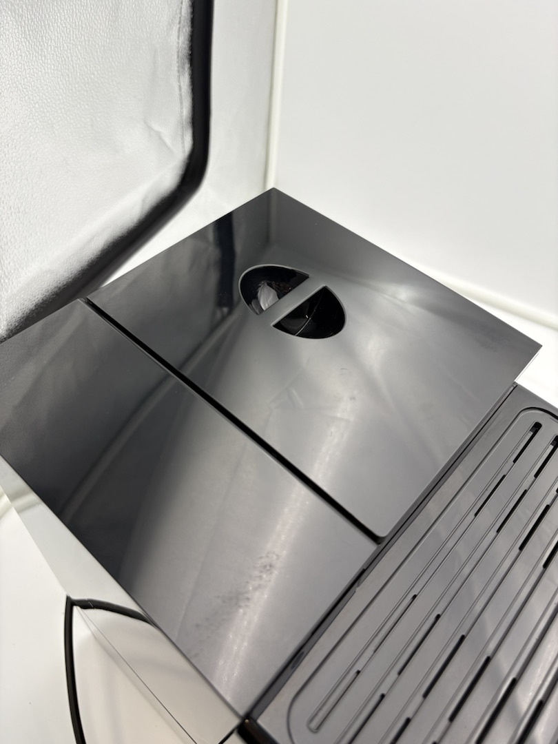 Ekspres posiada delikatne rysy widoczne na zdjęciach na następujących elementach: pokrętło mocy kawy, pokrywa hoppera, pokrywa zbiornika na wodę, zbiornik na wodę, lewy front, drzwiczki serwisowe.