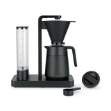 Ekspres do kawy Wilfa Performance Thermo charakteryzuje się nowoczesnym, minimalistycznym designem, który z łatwością wpasuje się w każdą współczesną kuchnię. Całe urządzenie ma matową, czarną obudowę, co nadaje mu elegancki, stonowany wygląd. Ekspres jest wyposażony w wytrzymały dzbanek termiczny ze stali nierdzewnej, który utrzymuje ciepło kawy przez długi czas, nawet do 3,5 godzin. Do dzbanka dołączono dwie pokrywki - jedną do zaparzania, a drugą do serwowania, która skutecznie zatrzymuje ciepło kawy. Całość spoczywa na stabilnej, prostokątnej podstawie, zapewniając solidność i nowoczesny charakter.