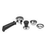 W zestawie z ekspresem znajduje się stalowy tamper, podwójne sitko do kawy świeżo mielonej, pojedyncze sitko do kawy mielonej oraz, ślepe sitko.