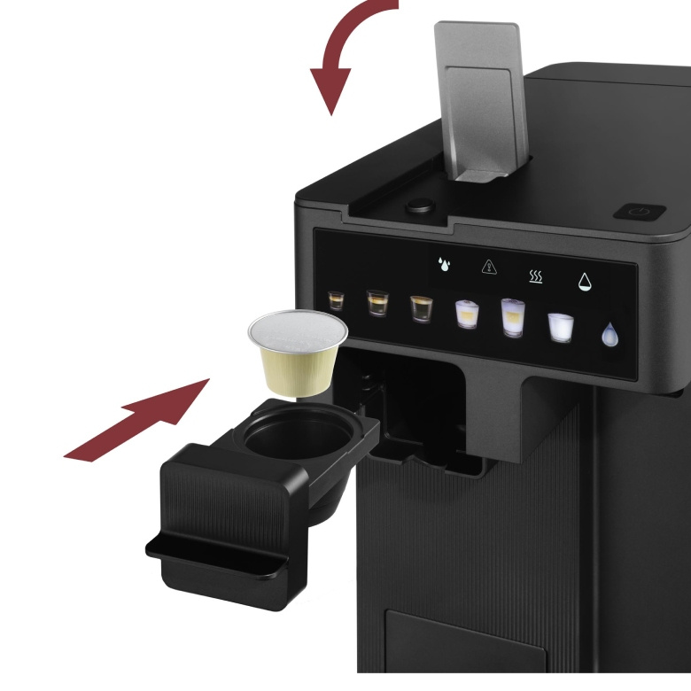 Dzięki kompatybilności z kapsułkami Nespresso, Dolce Gusto, Cafissimo oraz możliwością parzenia kawy mielonej, urządzenie zapewnia swobodę wyboru i dopasowanie do różnych gustów. Zintegrowany spieniacz do mleka i duży zbiornik pozwala przygotować napoje mleczne jak z kawiarni - bez wychodzenia z domu.