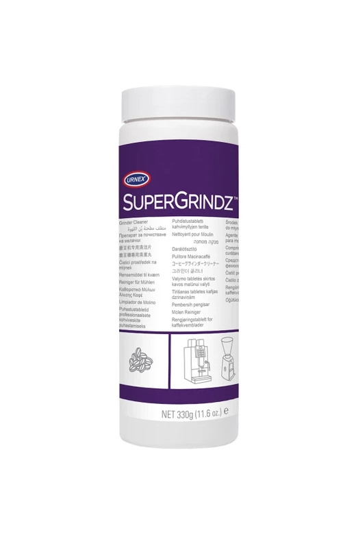 Urnex SuperGrindz to środek przeznaczony do czyszczenia młynków do kawy. Granulat należy stosować w młynkach do kawy tak, aby pozbyć się pyłu kawowego oraz olejków kawowych pozostałych po mieleniu kawy. Dzięki zastosowaniu naturalnych składników do produkcji granulatu jest on w pełni bezpieczny dla zdrowia, bez smaku i zapachu.