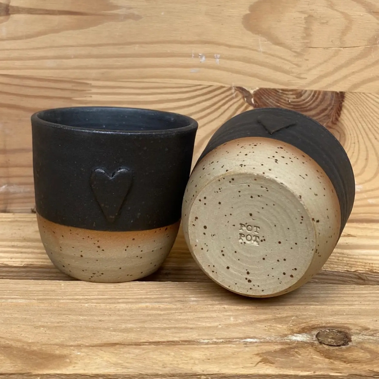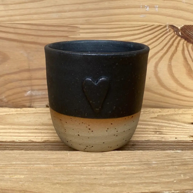 Ceramiczny kubek z delikatnie wypukłym serduszkiem od POTPOTSTUDIO, który doskonale sprawdzi się do przygotowania aromatycznej kawy lub gorącej herbaty. Do wykonania kubka wykorzystuje się ciemną glinę oraz matowe, szare szkliwo. Kubek wypalono w temperaturze 1240 stopni i pokryto szkliwem, które jest dopuszczone do kontaktu z żywnością.