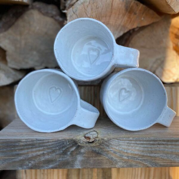 Ceramiczny kubek z uchem od POTPOTSTUDIO w kolorze białym, który doskonale sprawdzi się do przygotowania aromatycznej kawy lub gorącej herbaty. Kubek na dnie posiada urocze serduszko. Jest to doskonały pomysł na prezent.