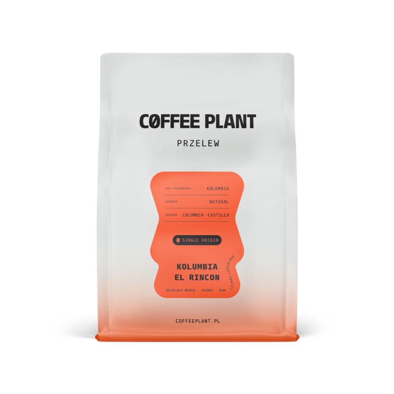 COFFEE PLANT Kolumbia El Rincon to jasno palona arabika Specialty z Kolumbii przeznaczona do alternatywnych metod parzenia. Jej ziarna odmian Colombia i Castillo pochodzą z z farmy El Rincon w regionie Huila w Kolumbii, gdzie zostały poddane naturalnej obróbce