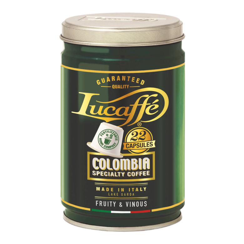 Lucaffe Colombia Specialty Coffee to włoska kawa w kapsułkach przeznaczonych do systemu Nespresso. Opakowanie zawiera 22 kapsułki, w których zapakowana jest zmielona stuprocentowa arabika pochodząca z kolumbijskich plantacji.