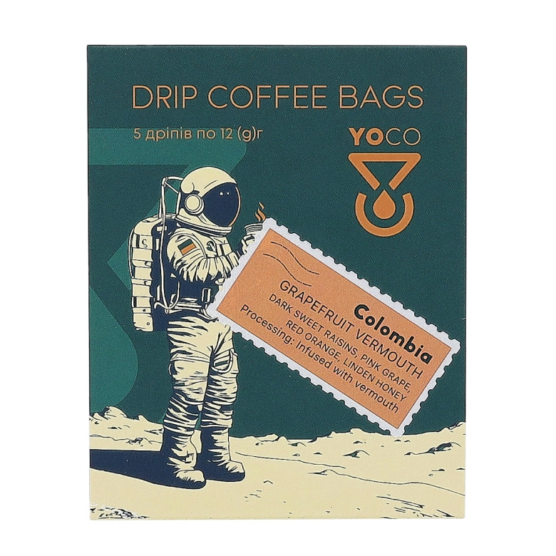 Kawa Drip-Bagi YoCo Coffee Colombia Grapefruit Vermouth stanowi wyjątkowy przykład nowego trendu w świecie kawowym, gdzie wykorzystuje się innowacyjne metody fermentacji. Ziarna tej Kolumbii zostały poddane procesowi pofermentacyjnemu z alkoholem. Zielona kawa została wsypana do zbiornika do fermentacji piwa. Mieszankę alkoholu i wody dodano do zielonej kawy i zamknięto w zbiorniku do fermentacji piwa, tworząc środowisko beztlenowe. Taka obróbka wpłynęła na końcowy profil smakowy kawy, nadając jej charakterystycznych i nietuzinkowych nut