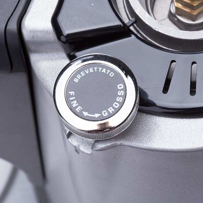 Srebrny młynek Eureka Olympus został wyposażony w płaskie, stalowe, utwardzone żarna o średnicy 75 mm, dzięki którym kawa mielona jest bardzo równomiernie i szybko.