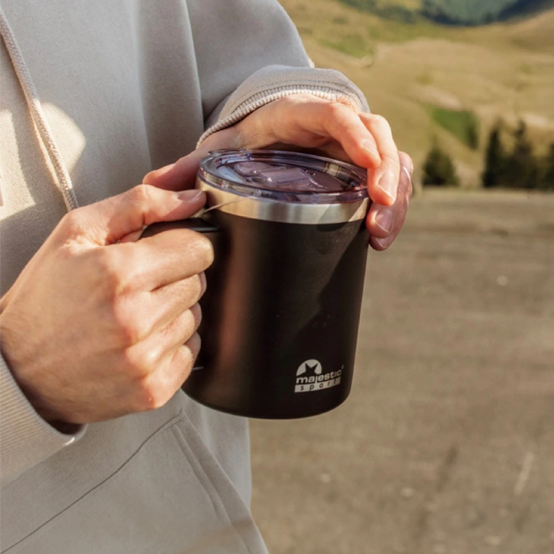 Kubek termiczny z uchem Majestic Sport Gump to w 100% szczelny kubek o pojemności 400 ml w kolorze czarnym, idealny dla osób, które cenią wygodę i styl w codziennym pośpiechu. Wygodny uchwyt ułatwia korzystanie z kubka w każdej sytuacji - w drodze do pracy, na spacerze czy podczas aktywności na świeżym powietrzu. Kompaktowe wymiary i szczelność sprawiają, że z łatwością zmieścisz go w torbie lub plecaku bez obaw o rozlanie, mając ulubiony napój zawsze przy sobie.