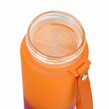 Pomarańczowo-różowa butelka na wodę Casno Missouri ma pojemność 1050 ml i z łatwością zmieści się w każdej torbie lub plecaku. Przymocowana opaska sprawia, że możemy przymocować butelkę do nadgarstka. Butelka posiada filtr, który sprawdzi się do przechowywania wody z owocami i miętą.