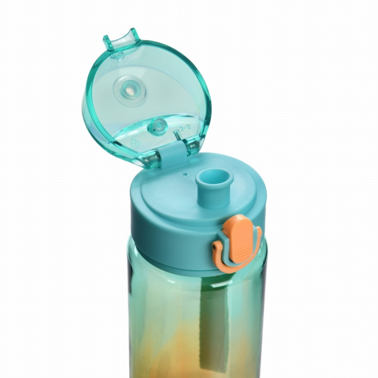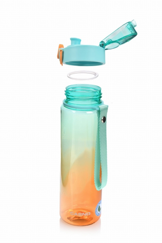 Estetyczna butelka na wodę Casno Aura w kolorze ombre zielono pomarańczowym idealnie sprawdzi się do szkoły, podczas spaceru, treningu lub po prostu w pracy. Butelka została wykonana z bardzo lekkiego Tritanu, który jest odporny na uszkodzenia oraz negatywne działanie wysokich temperatur. Butelka jest wolna od szkodliwego BPA i jest bezpieczna dla zdrowia. Nakrętka z dzióbkiem posiada dodatkowe zamknięcie i może być obsługiwana jedną ręką nawet podczas treningu.